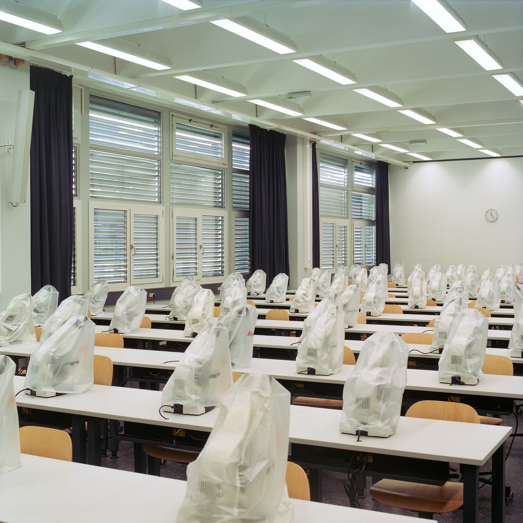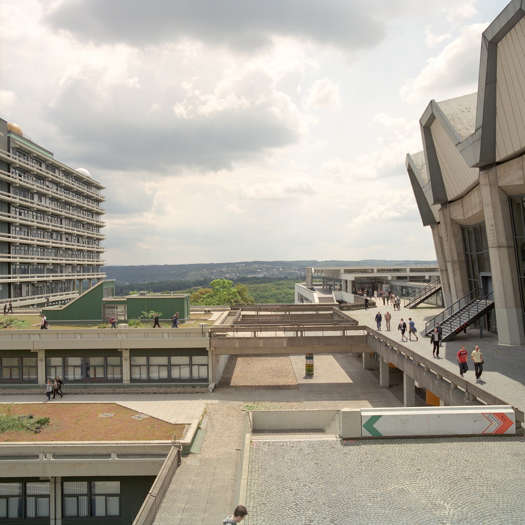 The work depicts the Ruhr University in Bochum, Germany, a complex built in the 1960s following ideas of the 1920s area of modernism. Its architectural concept intended the facilities to be designed perfectly for extensive and all-encompassing knowledge transfer. At the time it was celebrated as the »university of the future«.