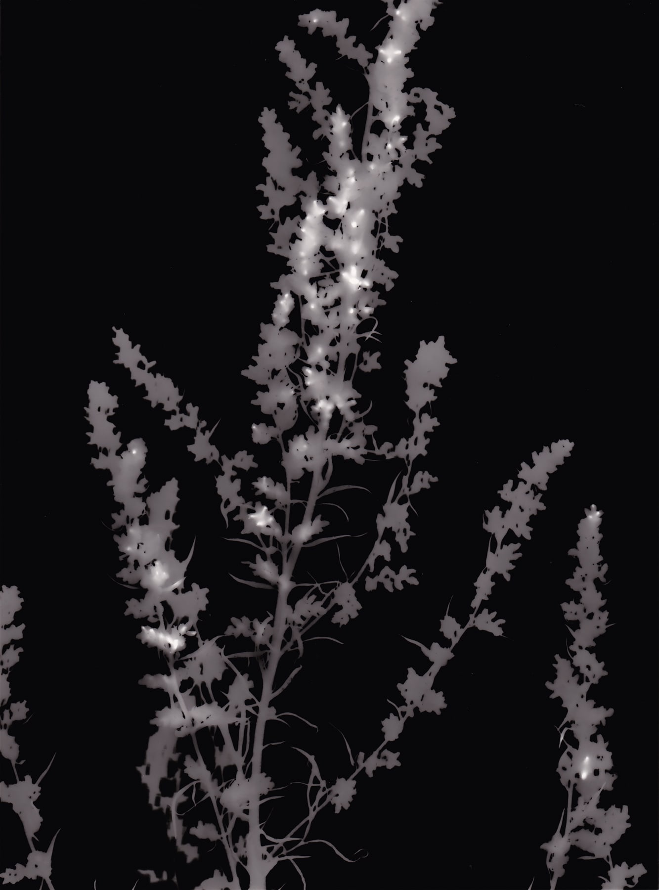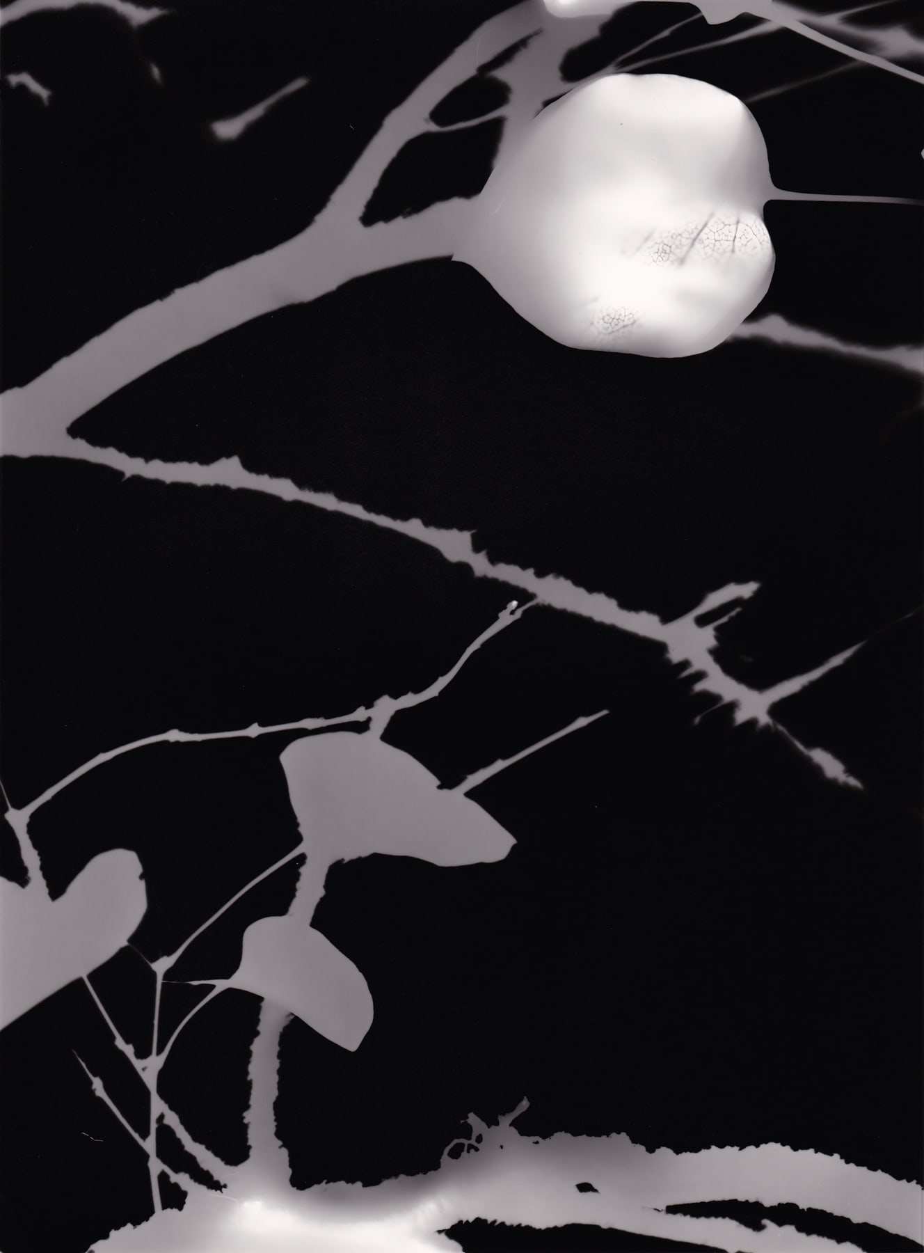 These images are made without camera – not even a camera obscura. There was nothing between the film and the surrounding nature. These images are not written with light, they are written with shadow.
