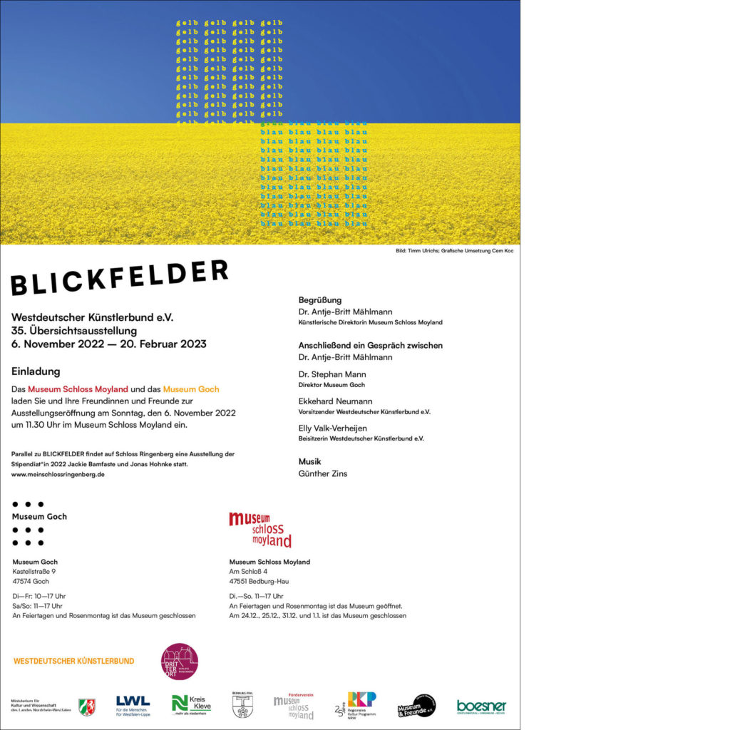 Westdeutscher Künstlerbund exhibition 28th October 2022 Recent black and white works to be shown atBLICKFELDERMuseum Schloss MoylandNov 6, 2022 – Feb 20, 2023Opening Nov 6, 2022 11.30 am
